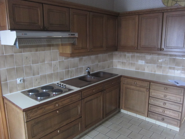 Appartement te huur : inkomhal, living, keuken, berging, 2 slaapkamers, badkamer en garage